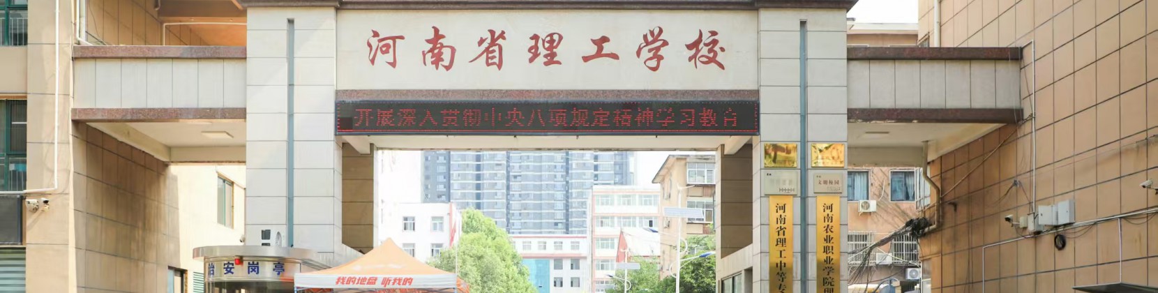 河南省理工学校(原河南省物资学校),是一所经河南省人民政府批准并在教育部备案的拥有多类别多专业的公办全日制普通中专。河南省理工中专学校创建于1984年,位于郑州市东风渠畔,茂花路6号,交通便利,环境优雅。河南理工学校占地面积110余亩,建筑面积8.2万平方米。现有教职工215名,其中高级职称52名,中级职称81名,在校学生4800余人。近年来,我校先后被评为“国家级重点中专”、“省级文明单位”、“全国职业技术学校职业指导工作先进学校”、“省职业指导与就业服务示范单位”、“河南省职业教育先进集体”、“省级文明学校”、“河南省教育教学研究工作先进单位”、“河南省最具影响力的十佳职业学校”、“首批河南省诚信规范招生示范院校”。